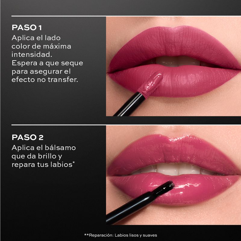Set de labiales que incluye dos labiales mate e indelebles dual de extrema duración con bálsamo labial para máxima hidratación en tonos Vin Mysteré y Merlot Forever + bolsa de regalo.