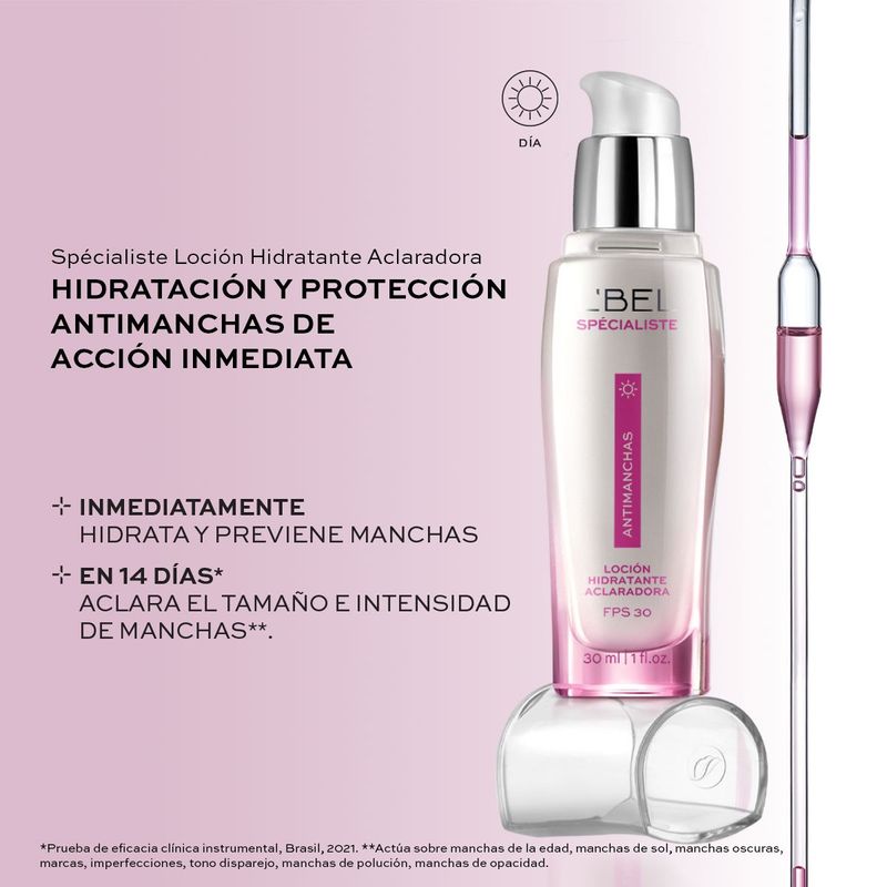 Loción para manchas en la cara Spécialiste Antimanchas Día FPS 30, hidrata, ilumina y uniformiza el tono de piel. 30 ml e 1 fl. oz. (4.60 x 3.50 x 14.10 cm). NSOC22327-23CO.