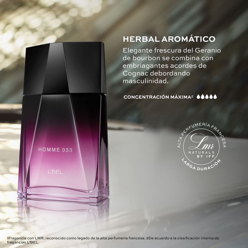 Aroma de hombre de larga duración con la elegante frescura del Geranio de bourbon y acordes de Cognac para el hombre con todo el poder de atraccion